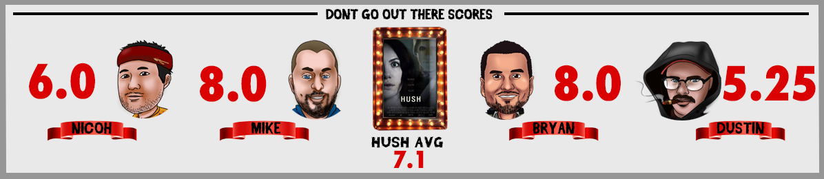 Silence can be killer as the guys head to a secluded home in the woods to take on the Mike Flanagan/Kate Siegel written, 2016's Hush.